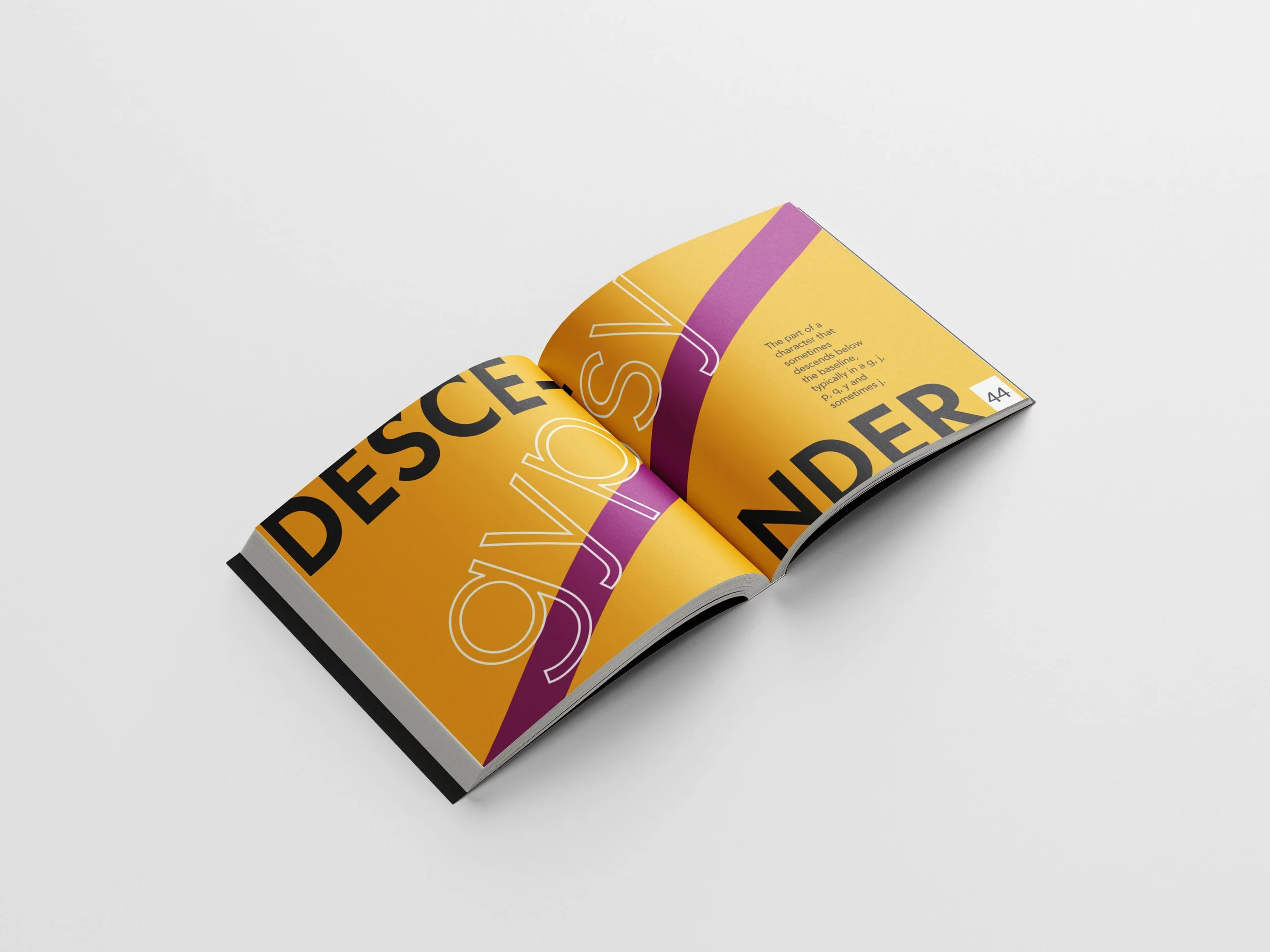 A pocket size book with a colorful and creative look and information about the terminologies (similar to a pocket dictionary) but for type.